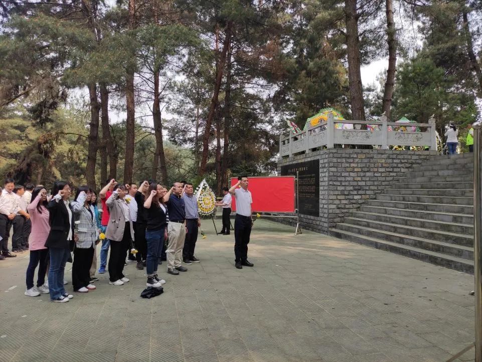 青山绿水留浩气,苍松翠柏慰英灵。学习会结束后,全体党员干部来到朱昌烈士陵园开展祭扫活动。在庄严的烈士碑前,大家重温了入党誓词,了解为祖国抛头颅撒热血的革命先烈英勇事迹,并怀着无比崇敬的心情,敬献花篮、鲜花,以此寄托对革命烈士们的深深敬意和无限哀思。