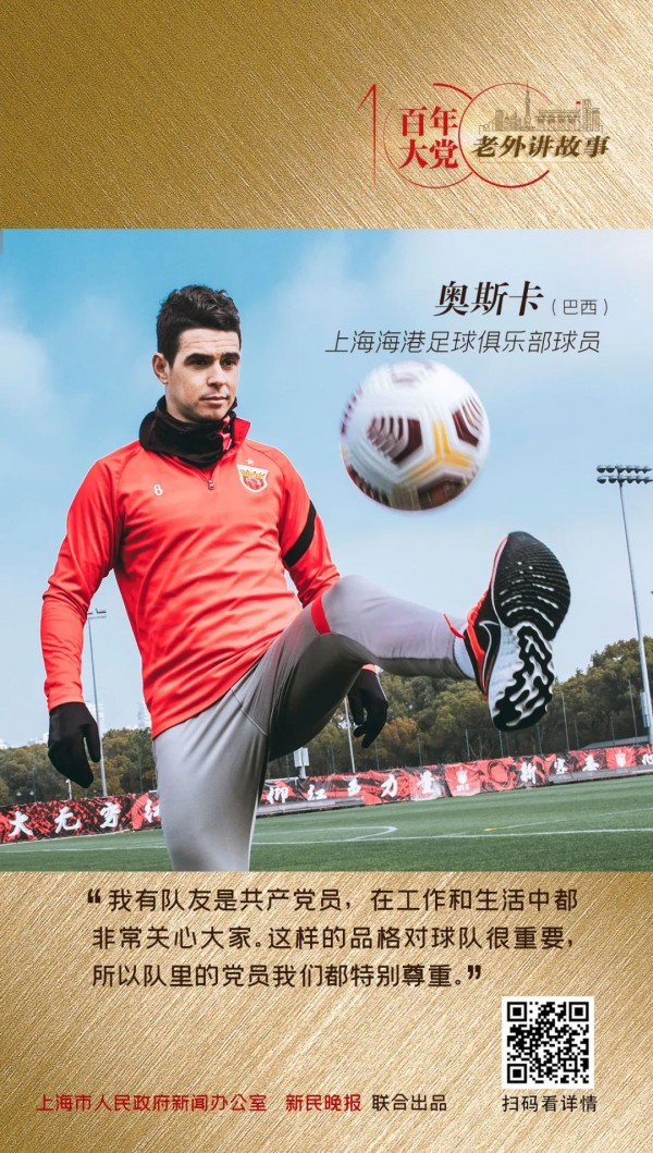 2016年12月25日,上海上港集团足球俱乐部(现上海海港足球俱乐部)给球迷们送上了一份大礼,国际知名球星奥斯卡加盟。从此,奥斯卡开启了他的“上海生活”。在上海的5年间,奥斯卡和他的队友夺得了2018年中超联赛冠军和2019年超级杯冠军,他和队友们还将继续为荣誉而战。