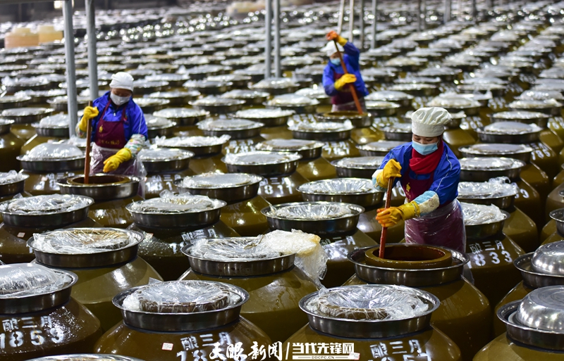 发布时间:2021-05-09 13:19来源:贵州日报近日,记者前往坐落在丹寨金钟经济开发区食品园区内的千里苗疆农业开发有限公司,在该公司的储存间里,记者没有听到机器生产的杂音,却看到一排排大缸整齐码放,蔚为壮观。这些大缸里,是正在悄悄发酵的辣椒酱,等待着成为酸辣可口的调味品。