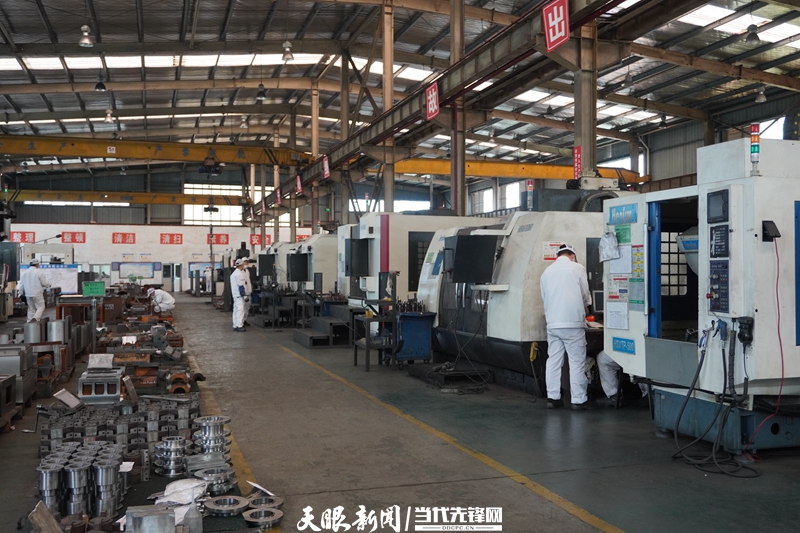 与千里苗疆的静悄悄不同,记者在另一边的兴富祥立健机械有限公司的生产车间里,看到一排排精密的数控机床前,均有一两个工人正在调试机器,或敲打削切,或调试装配,显得尤为热闹。