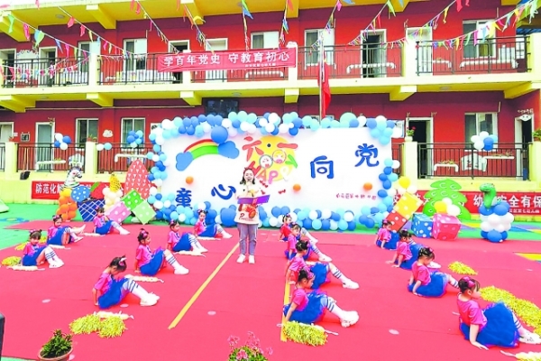 5月31日,白云区第七幼儿园以“童心向党”为主题举行文艺汇演活动,庆祝“六一”儿童节。活动在幼儿园教师和小朋友的集体舞蹈《我和我的祖国》中拉开序幕。小朋友在老师的组织带领下,表演了情景表演《小鸡舞》、舞蹈《精武门》、手语舞蹈《中国字中国人》、环保时装秀等精彩节目。
