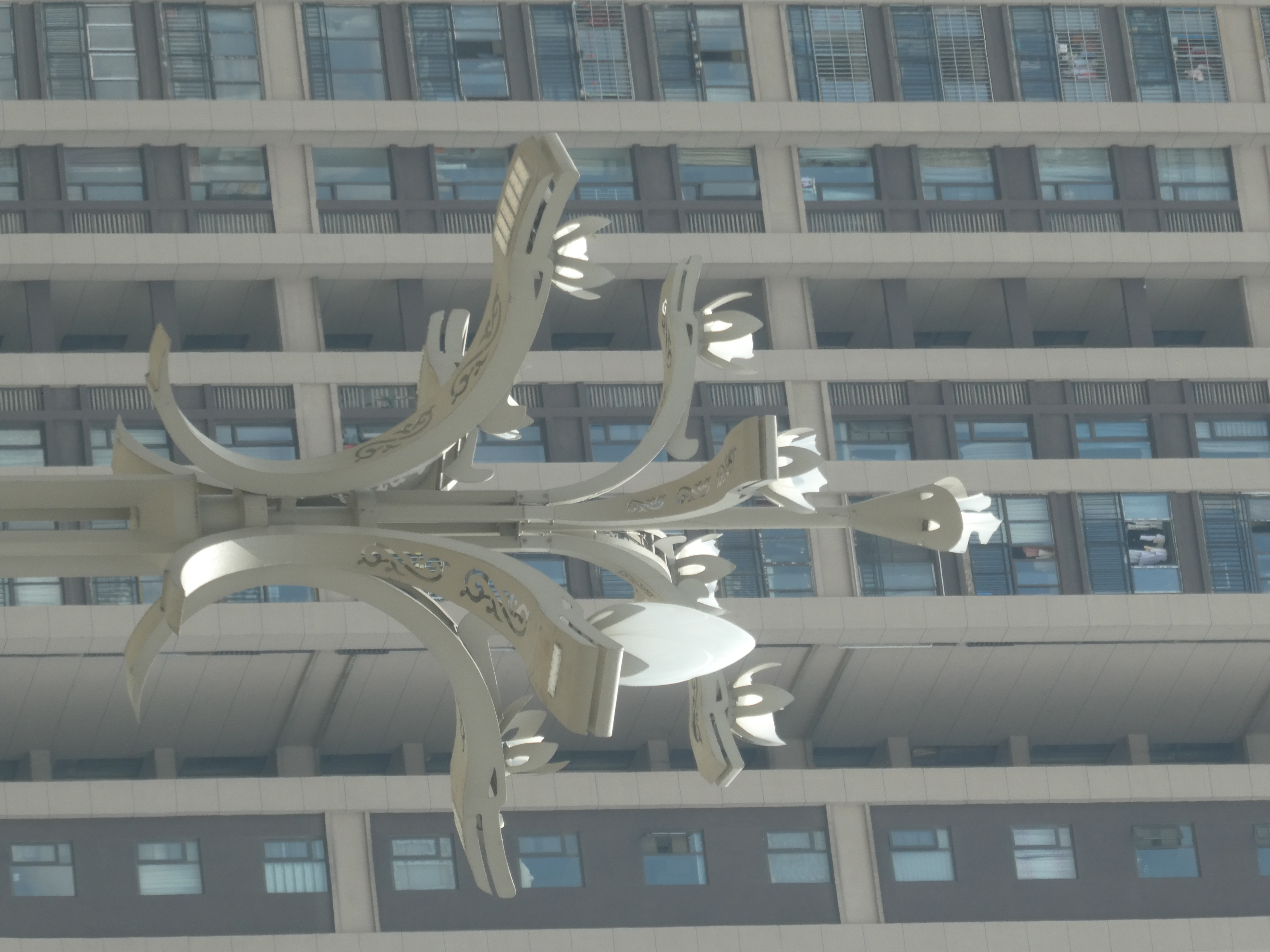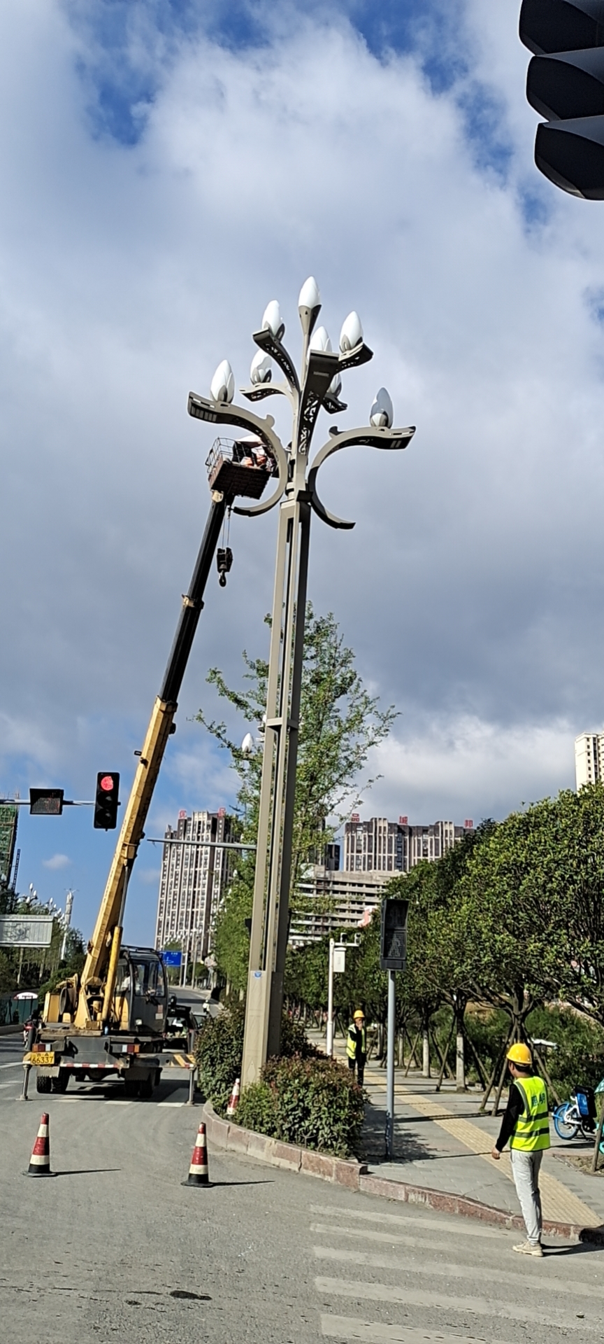 施工单位正对破损的灯罩进行拆除。