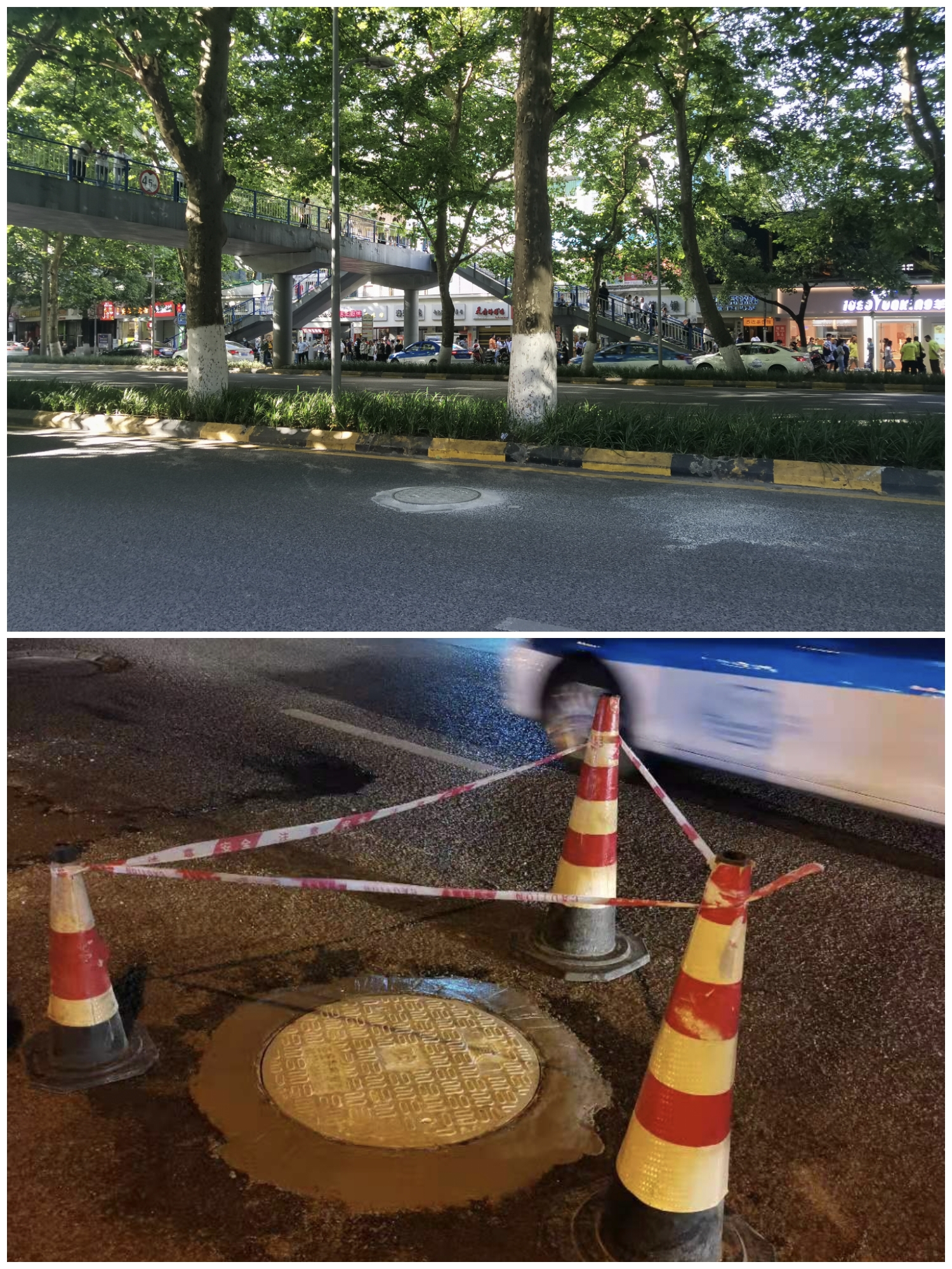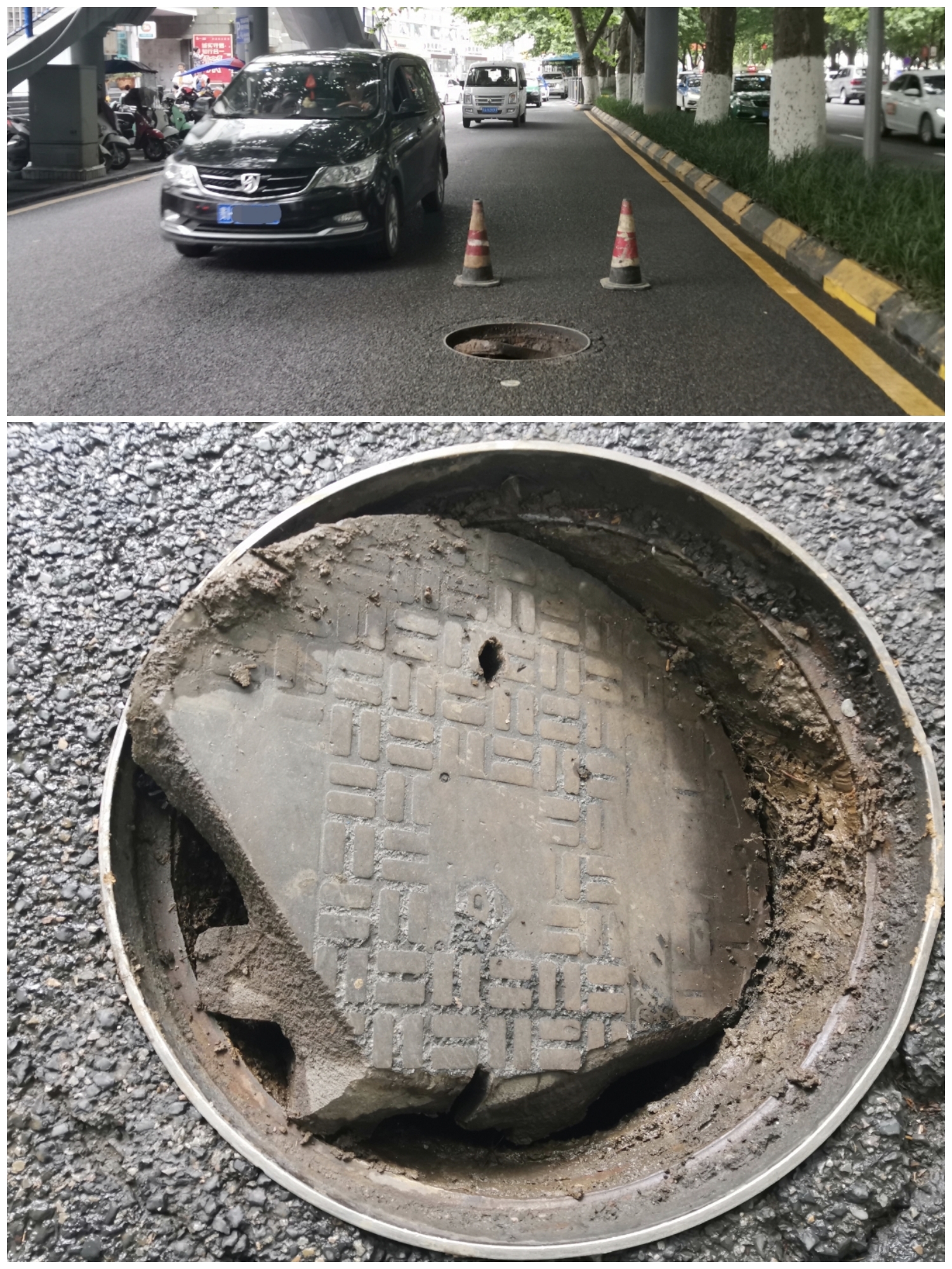 师大附近行车道上井盖陷落!部门连夜修复排除隐患