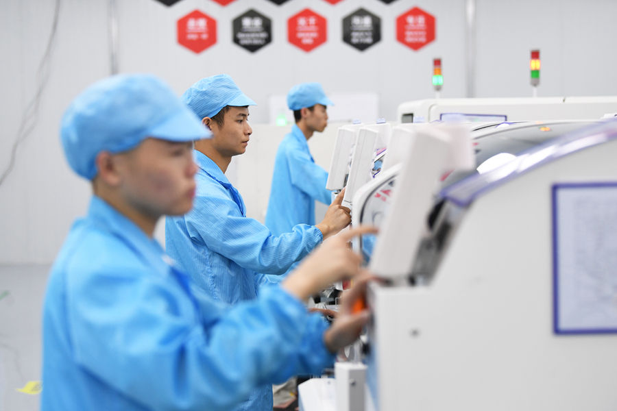 连日来,在贵阳市南明电子信息产业园内,贵阳臻芯科技有限公司工作人员正在SMT生产线上紧张有序地生产作业。