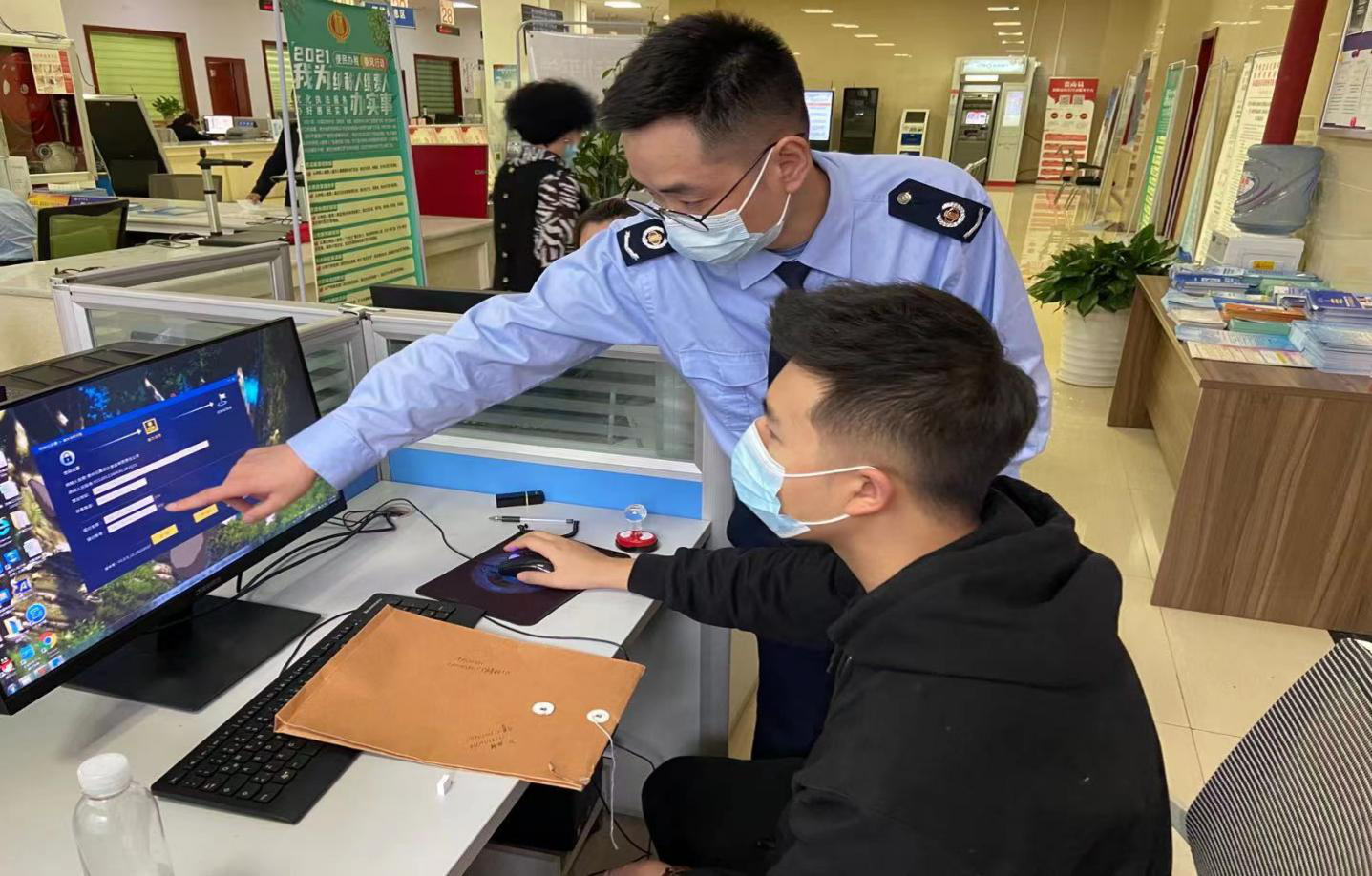 自助办税区工作人员辅导纳税人使用开票软件。 赵云飞 摄