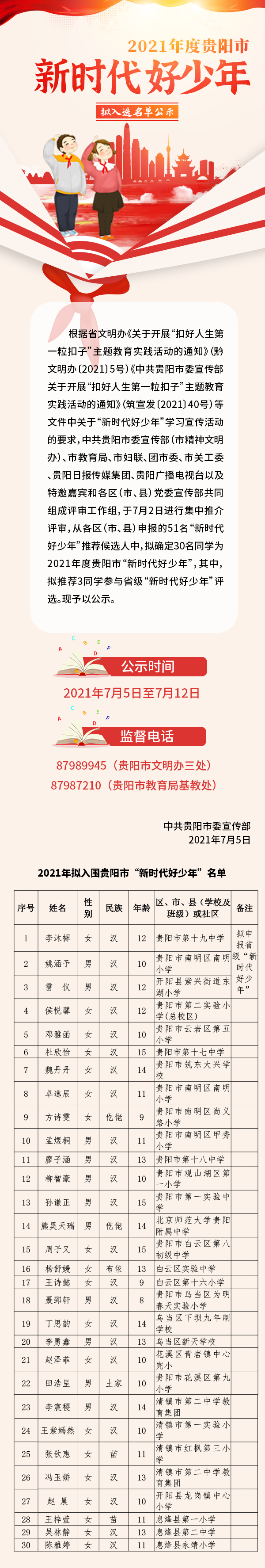 图述| 2021年度贵阳市“新时代好少年”拟入选名单公示