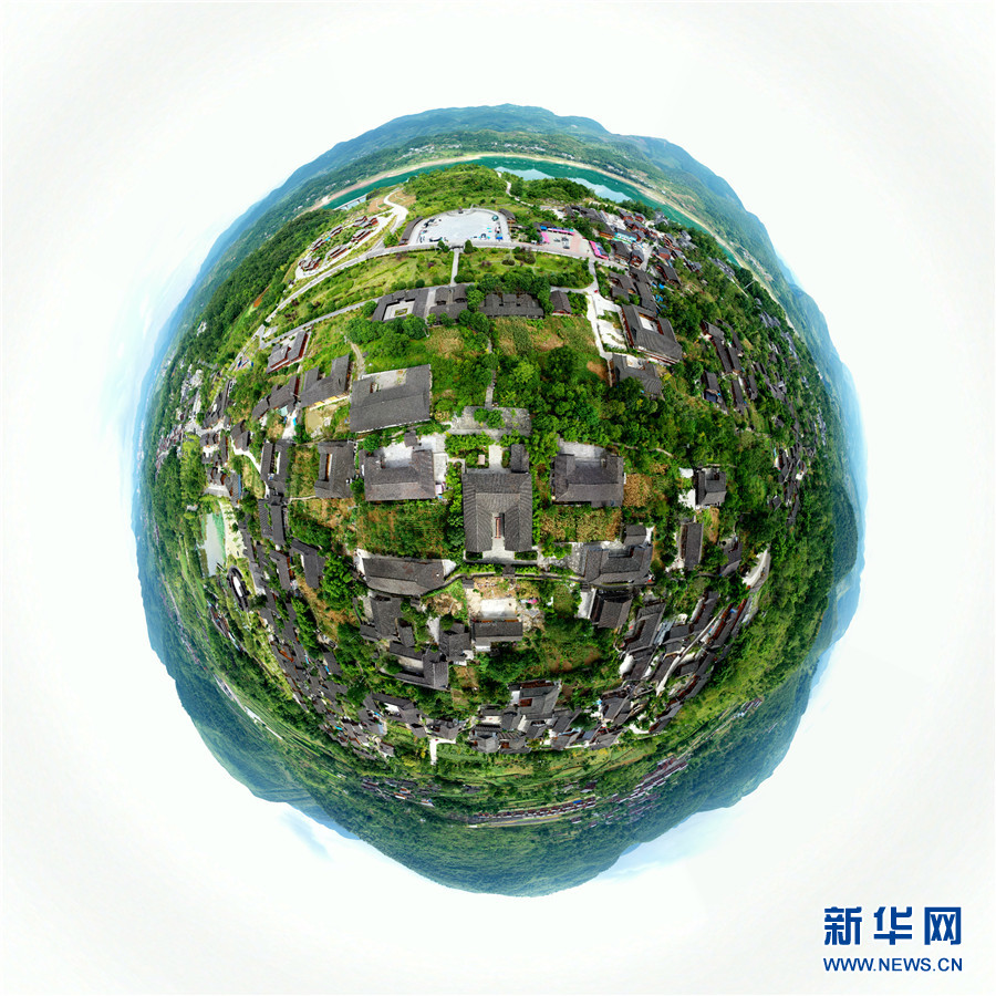 图为8月10日航拍的龙潭古寨一景。新华网 周远钢 摄
