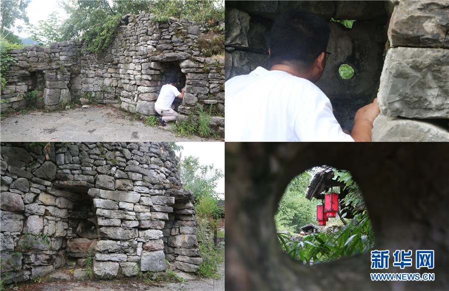 8月10日拍摄的龙潭古寨“丹堡院落”的防卫设施(拼版照片)。新华网 周远钢 摄