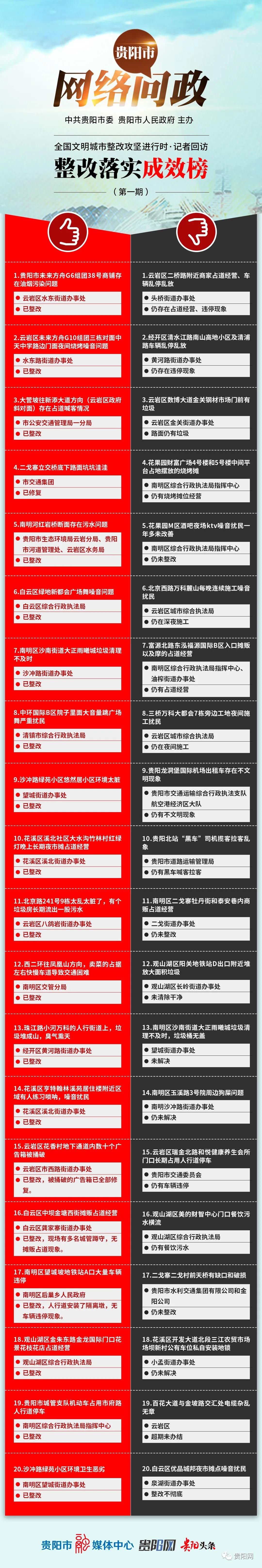 贵阳市网络问政平台发布整改落实成效清单