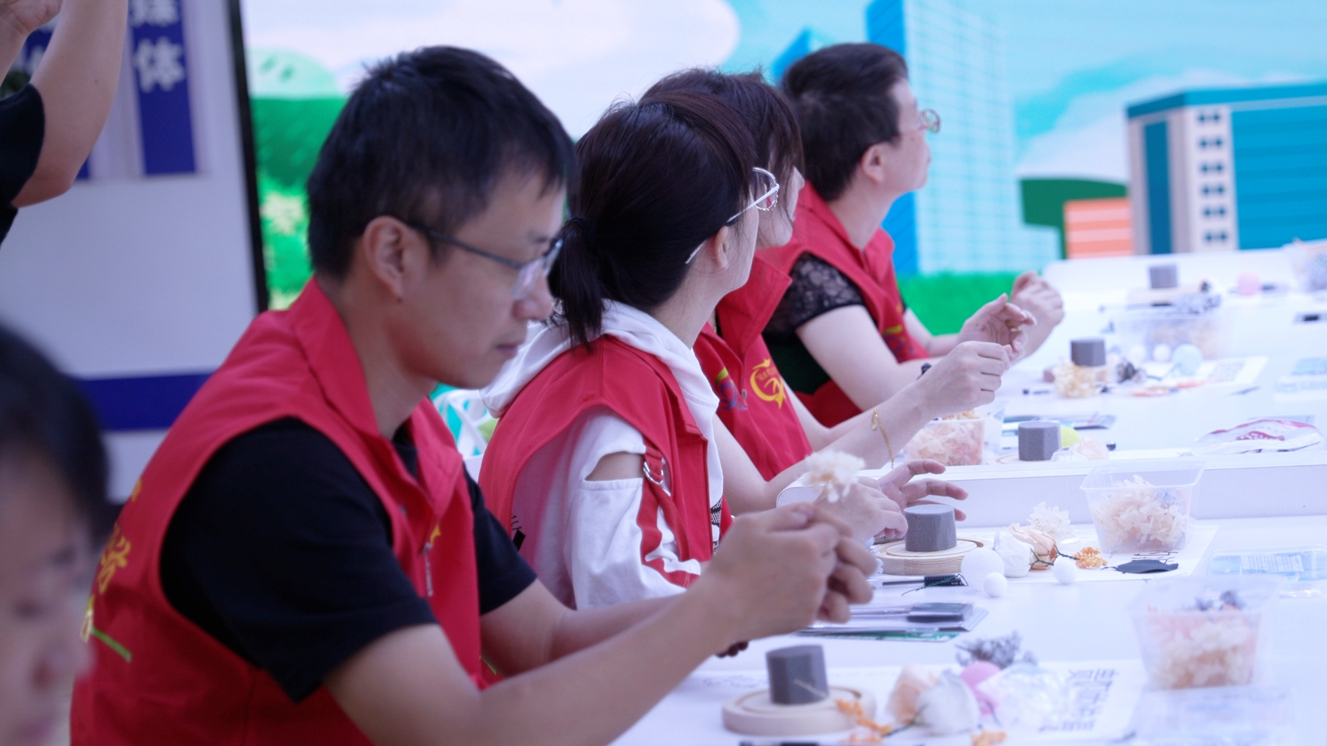 现场,指导老师为志愿者们做了细心讲解,虽然很多志愿者在工艺品制作上零基础,但都十分认真地进行操作,同时积极地向老师寻求装饰建议,力求让自己的作品呈现出最完美的样子。