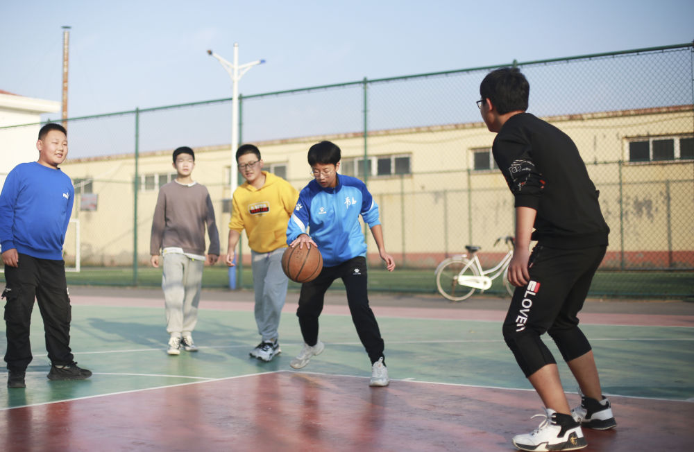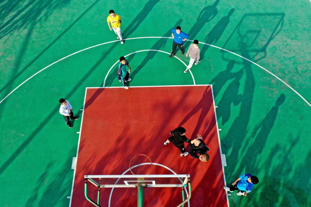 ↑10月24日,篮球爱好者在山东省青岛市即墨区龙山街道大留村篮球场打篮球。新华社发(张光明 摄)