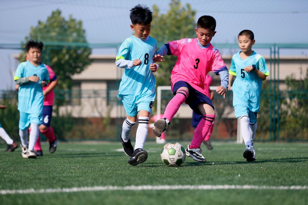 ↑10月24日,山东省青岛市即墨区龙山街道团彪庄村的小学生在足球场踢球。新华社发(梁孝鹏 摄)