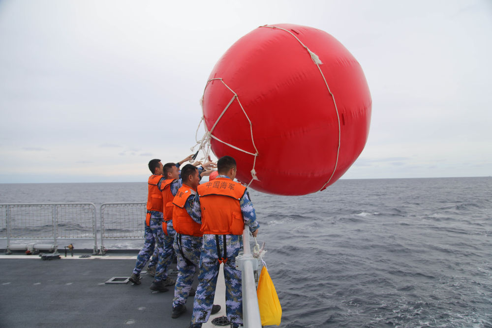 ↑当地时间10月19日,中俄首次海上联合巡航舰艇编队在机动途中组织实际使用武器课目演练。这是中方舰艇官兵在投放漂浮靶标。新华社发(陈汶财摄)