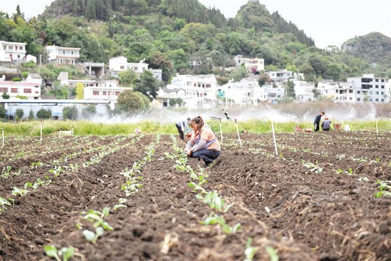 图为:10月15日,农民在安龙县国家科技农业园内种植西兰花。