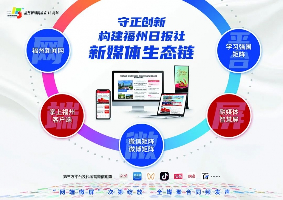 打造一体化新媒体生态链;建设市县联动“福州新闻云”平台;升级“掌上福州”客户端4.0版;全市布局超1500面融媒体智慧屏;承建“学习强国”福州学习平台;……