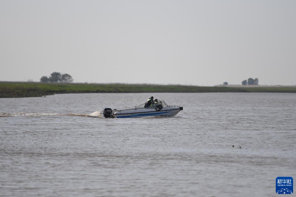 11月12日,何东顺和父亲何大明在湖南省岳阳市东洞庭湖巡护。新华社记者薛宇舸摄
