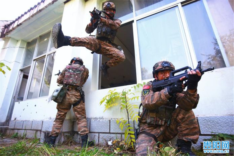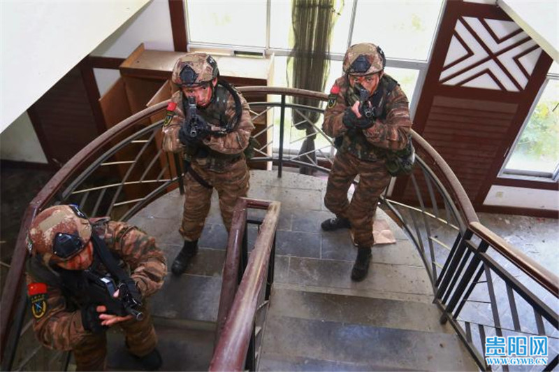 贵阳网讯 12月7日,武警贵州总队机动支队特战大队将部队拉到驻地野外陌生复杂环境,开展楼房反劫持战斗演练。