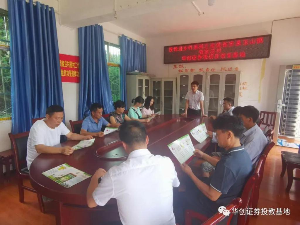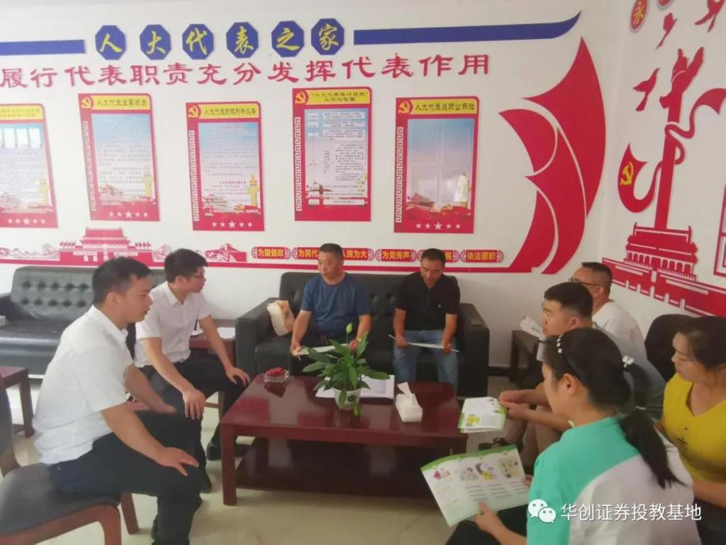 我们到达了中火村,该村会议室设施条件不完善,不便召集更多村民,于是在该村村支书的安排下我们在小会议室向部分百姓举办了专场讲座,我们向百姓发放了与投教相关的宣传折页及物资后,首先向村民介绍了华创证券投教基地,并了解到部分村民家中有小孩刚参加高考马上步入大学,网贷事件又在大学及社会青年群体时有发生,于是我们工作人员重点向村民讲解了网贷及非法集资的危害,并通过实例让村民更加警醒,此次活动得到了当地村干部及村民的支持与表扬。