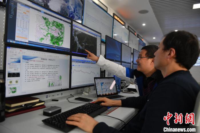 北京2022年冬奥会张家口赛区气象中心预报员正在工作。韩冰摄