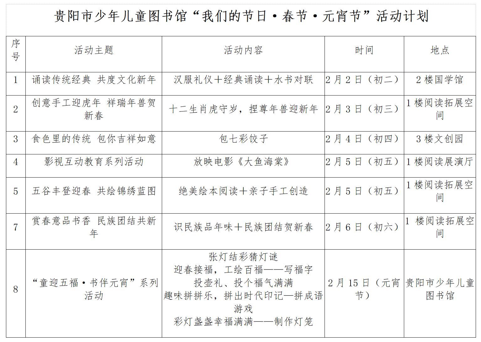 贵阳市少年儿童图书馆2022年春节系列活动开启——从年初二至大年十五 12场亲子活动等你来