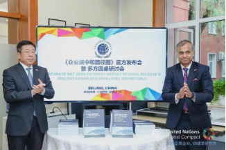 联合国驻华协调员常启德(SiddharthChatterjee)、国务院国资委副主任、联合国全球契约组织理事任洪斌发布《企业碳中和路径图》