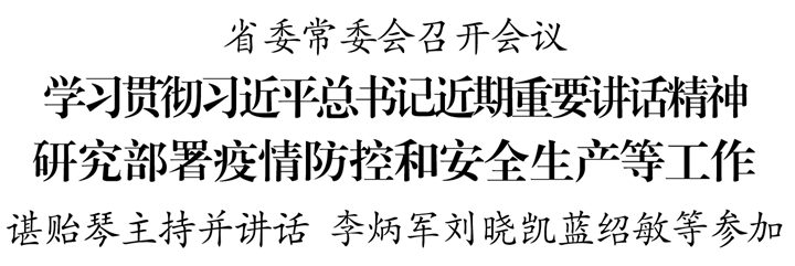 4月18日,省委常委会召开会议,学习贯彻习近平总书记在北京冬奥会、冬残奥会总结表彰大会和在海南考察时的重要讲话精神,听取我省疫情防控工作情况汇报,审议《关于认真贯彻落实国务院安委会安全生产“十五条”措施的意见》。