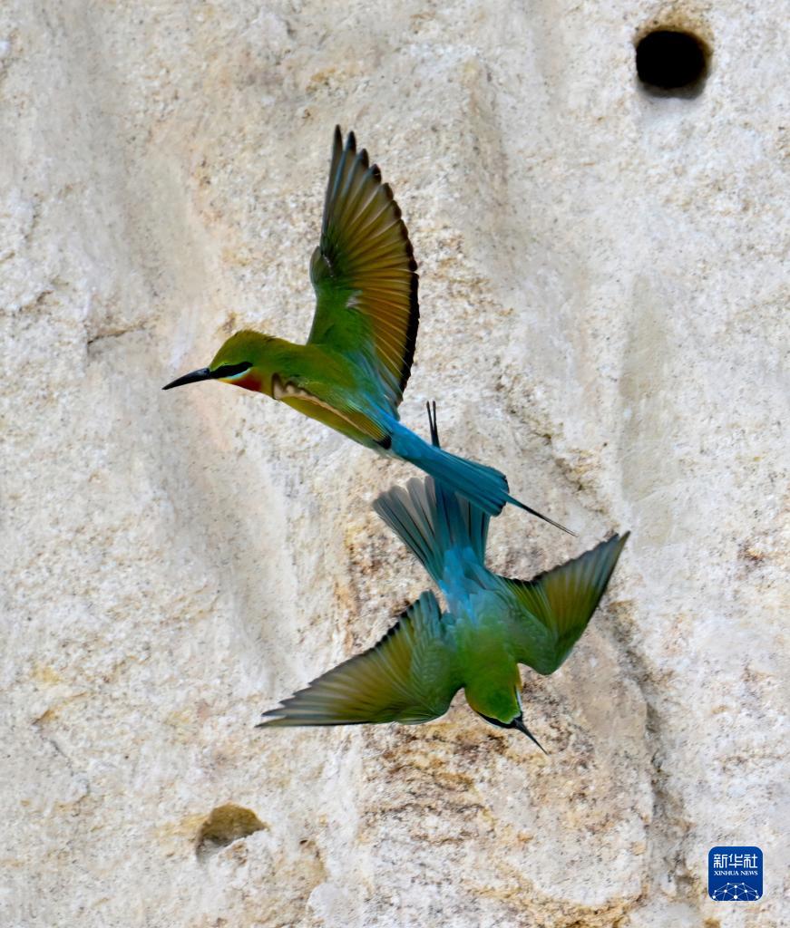 5月3日,栗喉蜂虎在土墙边准备开始筑巢。
