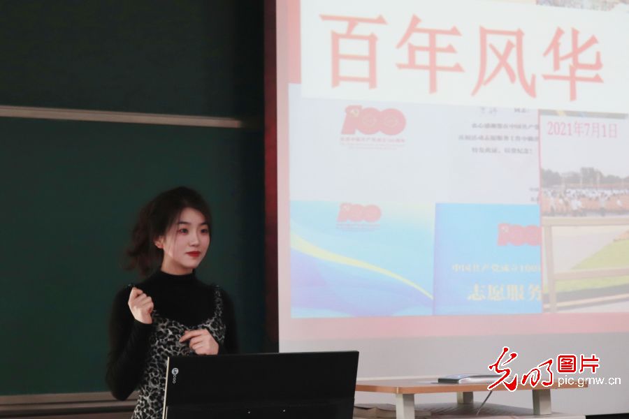 2021年12月1日,北京航空航天大学(学院路校区),人文与社会科学高等研究院20级本科生辅导员罗婷在思政课上向学生们进行“强国有我”宣讲。身为辅导员的罗婷,希望通过自己的帮助与鼓励,和所有青年一起逐梦,追随光,靠近光,成为光,散发光,为国奉献,绽放芳华!