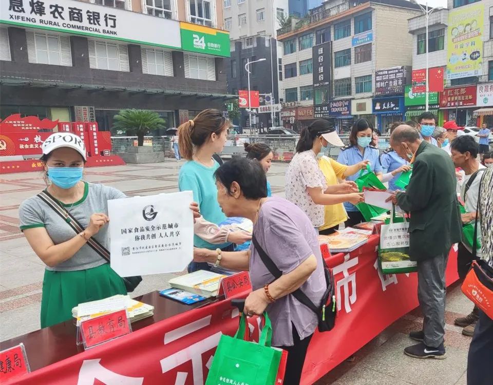 “民以食为天,食以安为先。”食品安全,责任重于泰山,事关广大人民群众的身体健康和生命安全。为进一步加强食品安全知识宣传,提高广大人民群众食品安全意识,推动食品安全社会共治。7月7日,息烽县市场监督管理局联合永阳街道、教育局、公安局、农业农村局、卫健局、司法局等食药安委成员单位,在县城十字街广场开展了以“共创食安新发展,共享美好新生活”为主题的2022年食品安全宣传周活动。