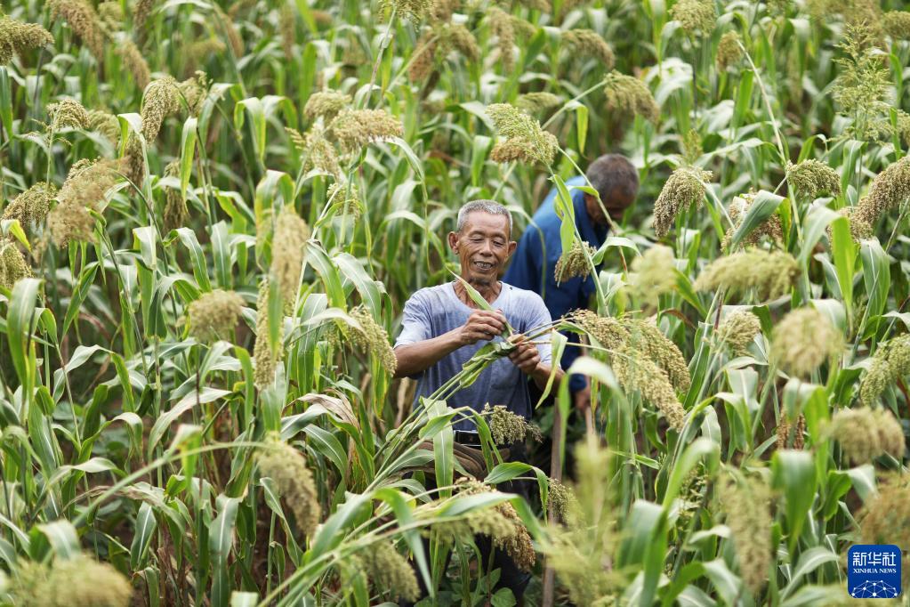 7月21日,村民在贵州省赤水市文华街道双龙社区的高粱地里劳作。