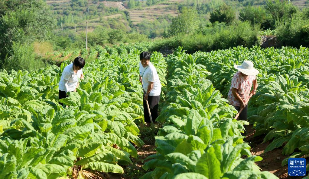 7月21日,在河南省洛阳市汝阳县柏树乡柏树村,农民在进行田间管理。