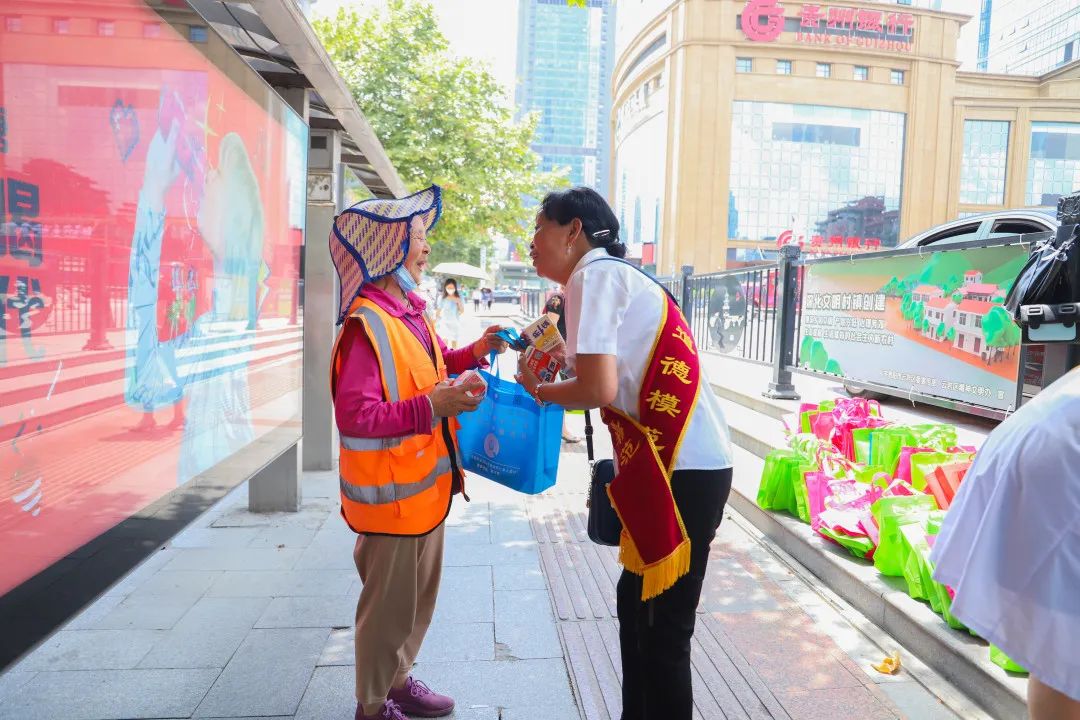 “很感动,这么热的天,你们还在这里给我们送水!”“觉得很暖心,感觉身边的好人还是多,我要向他们学习。”环卫工人罗阿姨和出租车司机李保军为现场的志愿者们点赞。