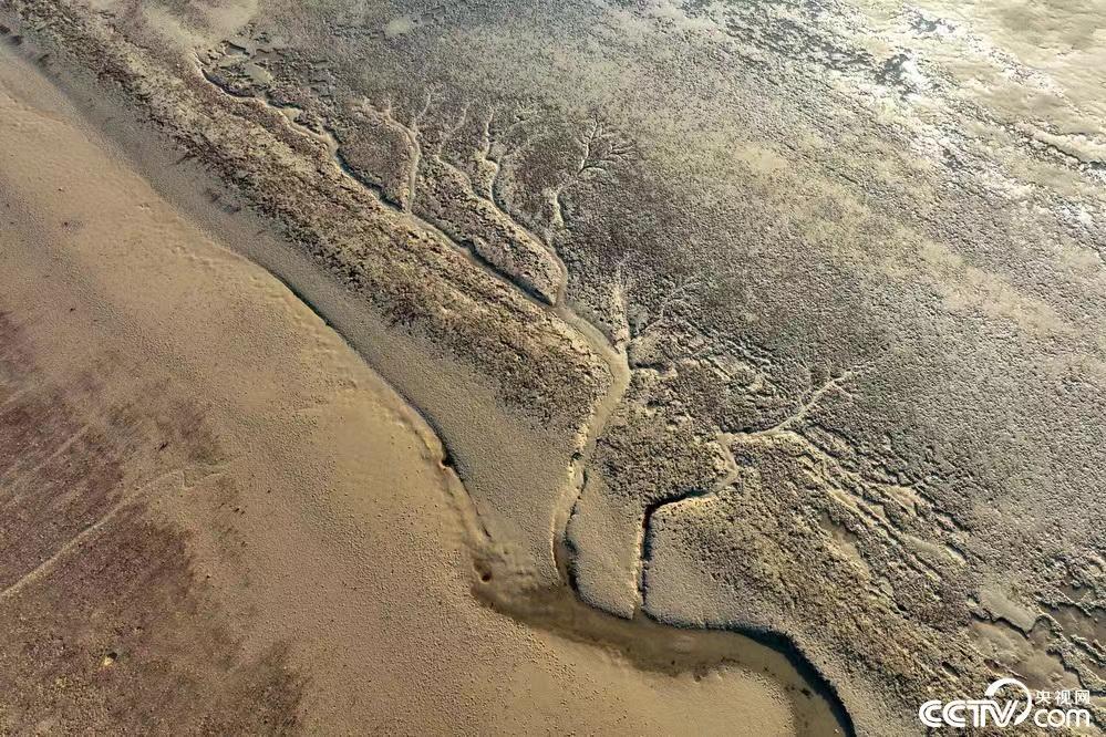 10月11日,山东东营黄河入海口周边海滩,由于潮汐作用形成了形状各异的“大地之树” 。