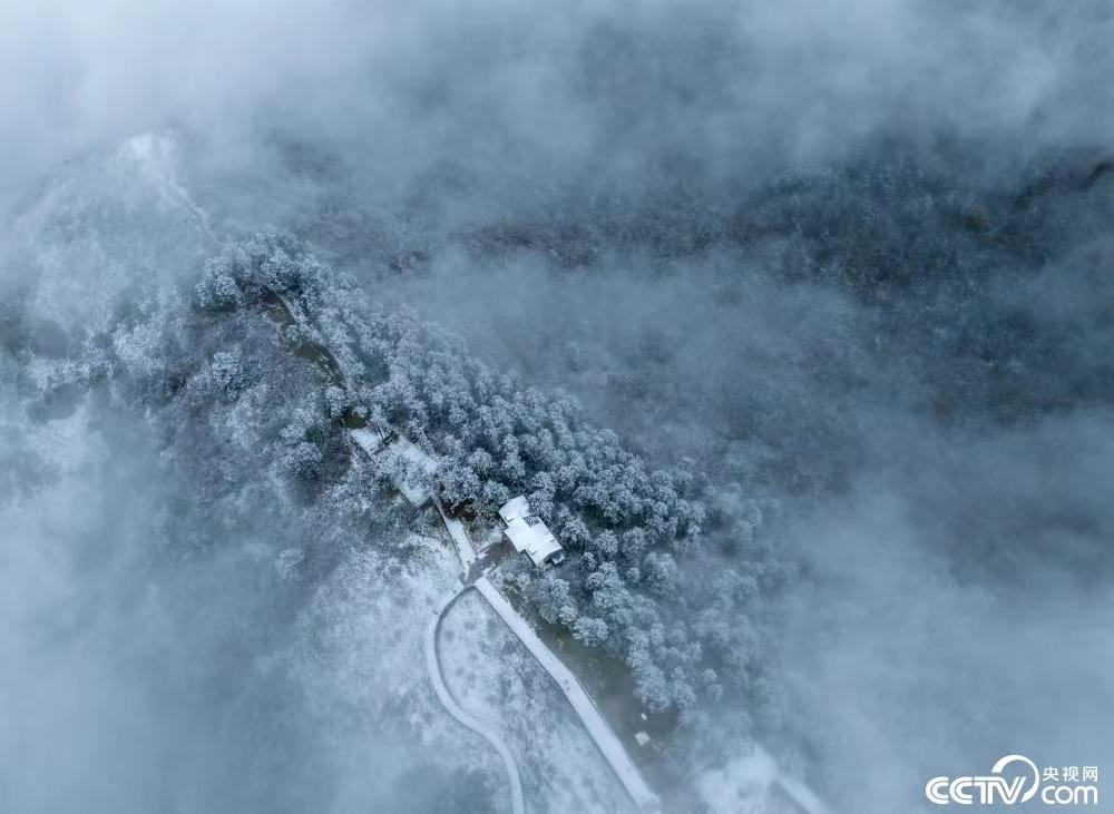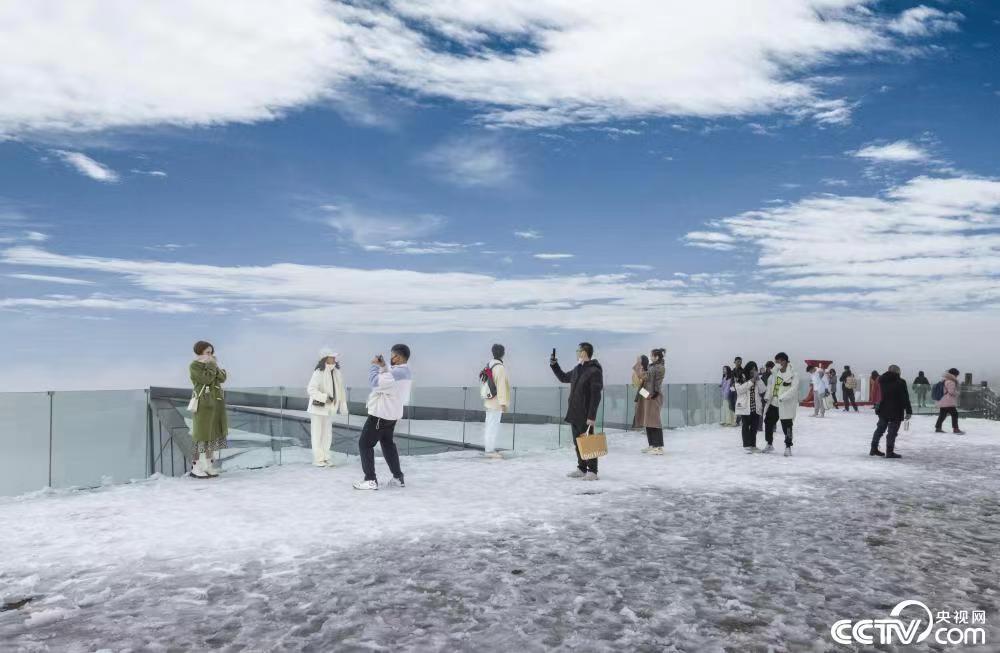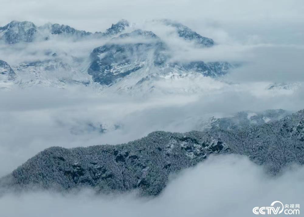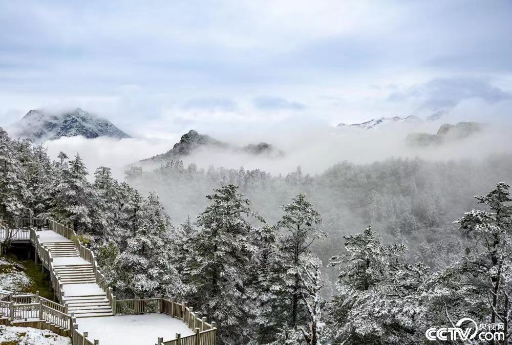 2022年10月10日,四川成都大邑西岭雪山景区银装素裹。9日晚,当地迎来今年秋季首场降雪,吸引众多游客观赏。