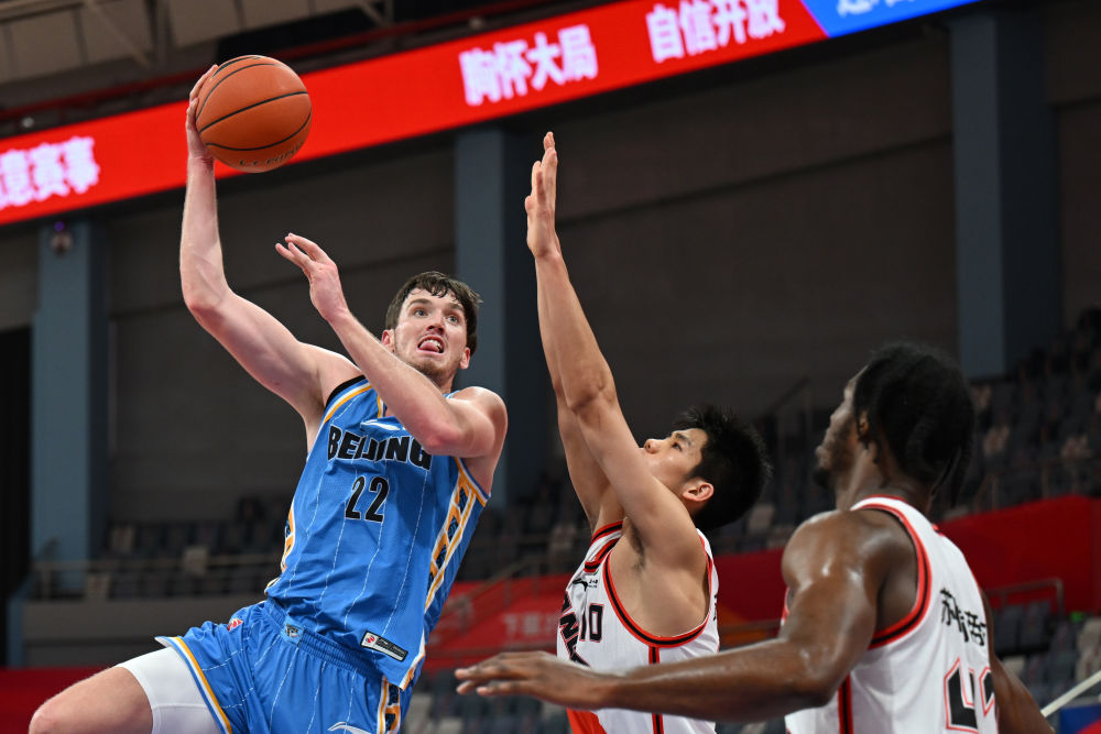 10月18日,在浙江杭州进行的2022-2023赛季中国男子篮球职业联赛(CBA)第一阶段第四轮比赛中,北京首钢队以95比82战胜苏州肯帝亚队。