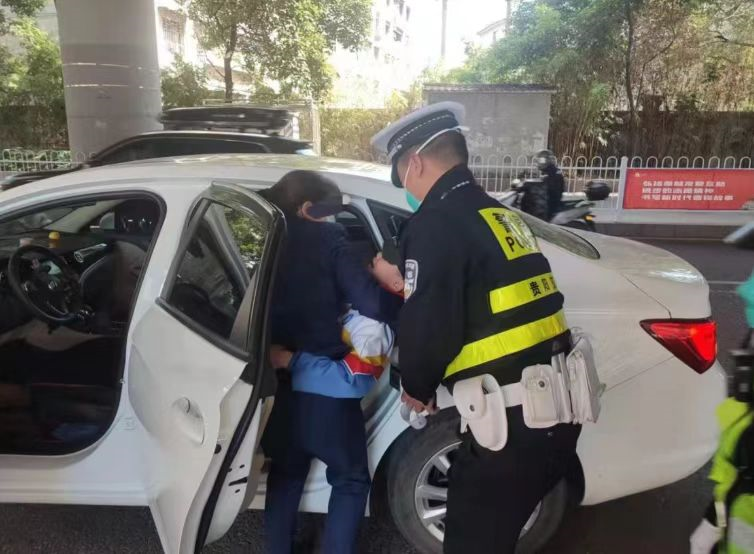 2022年10月19日11:10分许,贵阳市经开区交管分局民警陈义怀在小河平桥驾车巡逻时,听到警车后有人大声呼喊,回头便看到一辆私家车女驾驶员在车内不停招手呼喊,陈义怀立马下车上前了解情况。