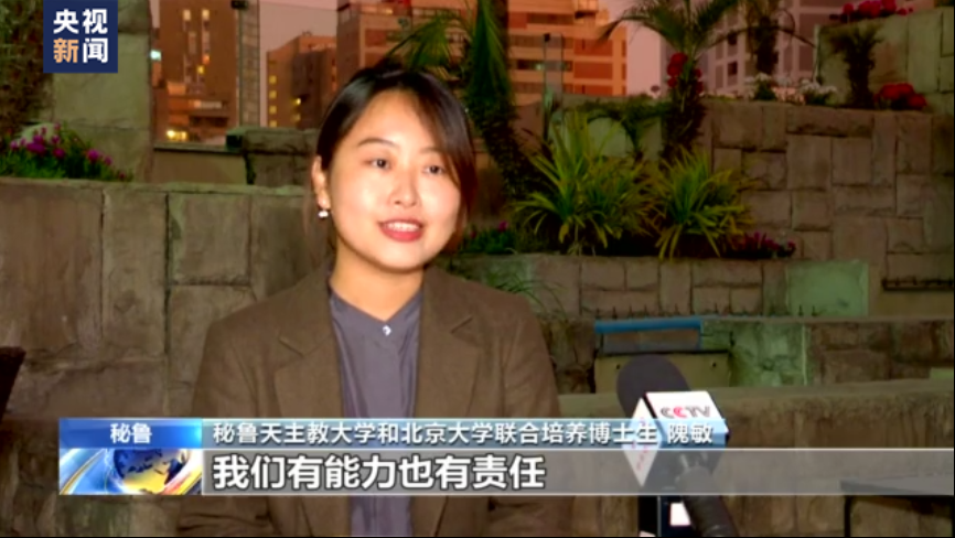 秘鲁天主教大学和北京大学联合培养博士生隗敏:习近平总书记在二十大报告中勉励广大青年,怀抱梦想,脚踏实地。作为新时代的中国留学生,我们既是见证者也是参与者。我们有能力也有责任来讲好中国故事。