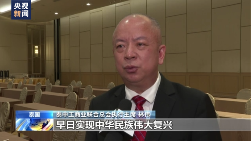 泰中工商业联合总会执行主席林伟:愿在中国共产党,在习近平总书记的带领下早日实现中华民族伟大复兴。我们海外华人华侨将发挥更大的桥梁和纽带作用,凝聚智慧和力量,为祖国繁荣昌盛,国富民强,贡献新力量。
