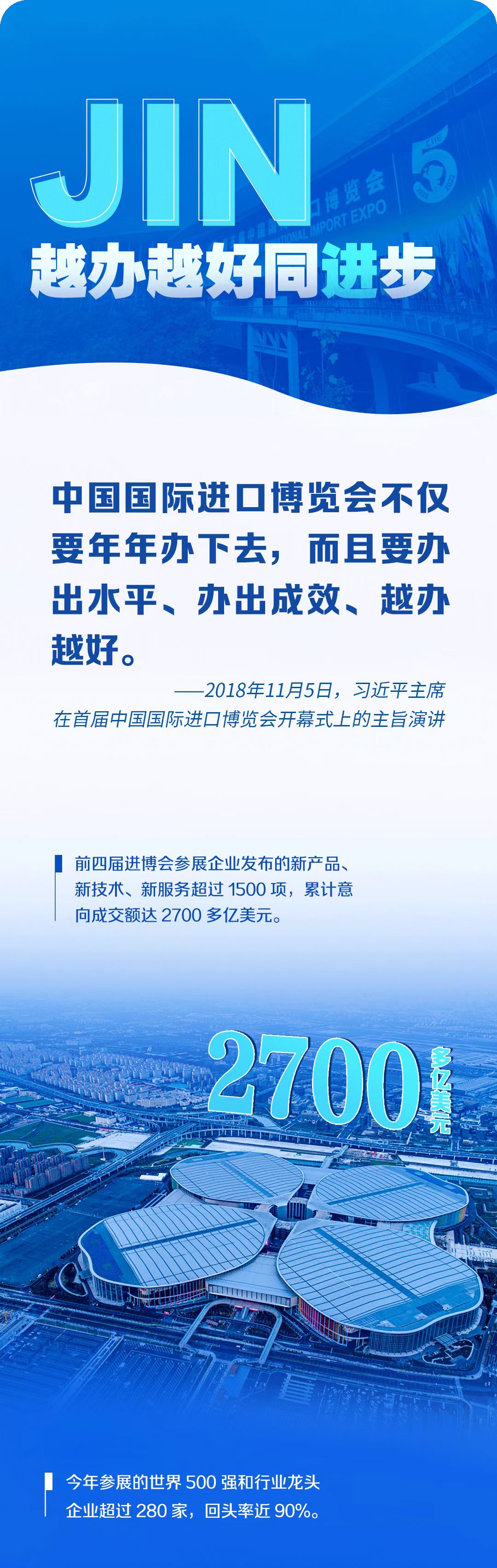 5年来,进博会从无到有,越办越好,成为新时代中国不断扩大开放的生动缩影,各国共享中国发展机遇、实现互利共赢的重要见证。