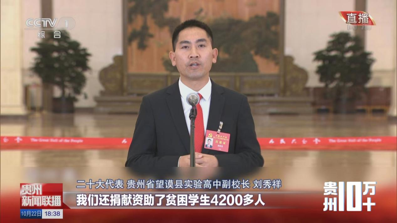 二十大代表、贵州省望谟县实验高中副校长刘秀祥说:“这些年,我们将1800多位孩子重新劝返到了校园,我们还捐献资助了贫困学生4200多人。十年来,随着党和政府对乡村教育投入不断加大,现在我们全县最漂亮的建筑和最好的环境就是学校。我们从2012年全县只有70个人考上大学,到今年2022年有1300多人,每一个村至少有一名大学生。”