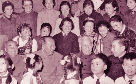 1964年10月,周恩来和毛泽东、刘少奇、朱德接见大型音乐舞蹈史诗《东方红》的演员