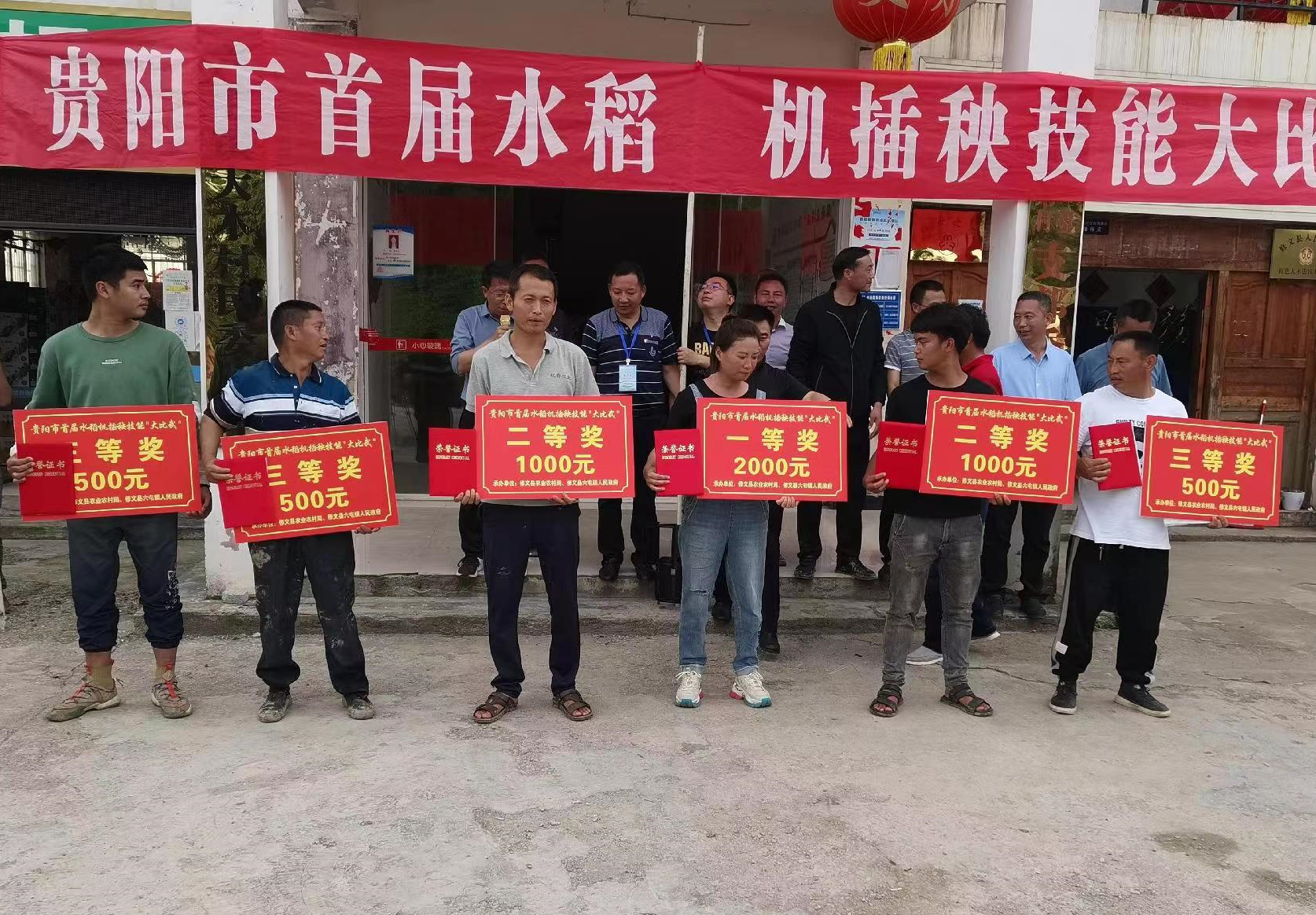 李昌金(前排左3)荣获贵阳市首届水稻机插秧技能大比武二等奖。
