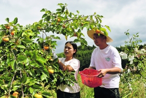 白云区牛场布依族乡石龙村村民在采摘脆柿。