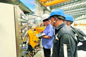 工人在贵州中铝铝业有限公司铝箔生产线上忙碌。