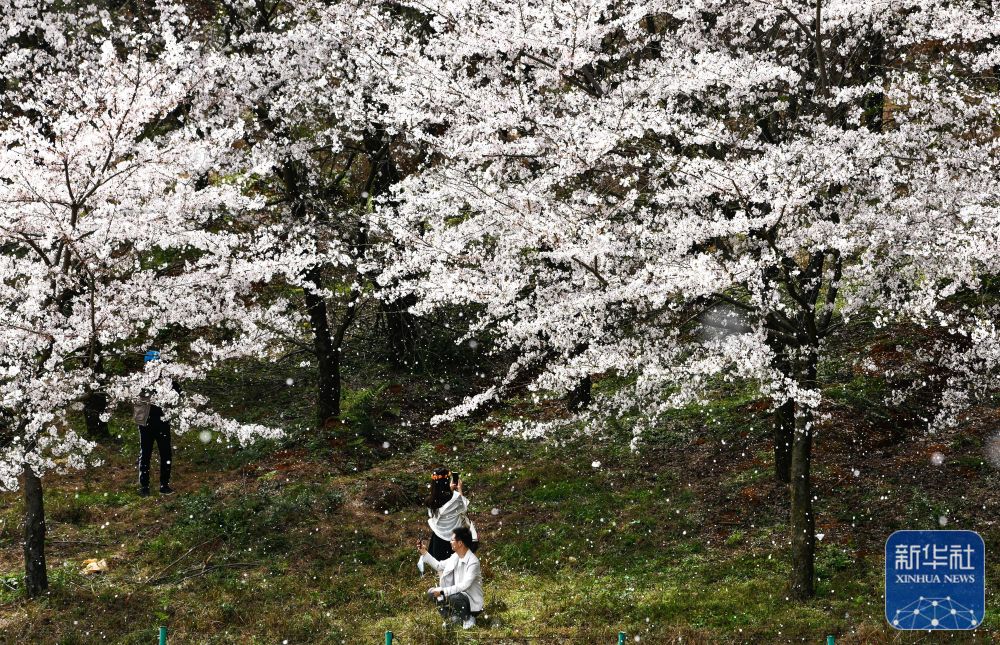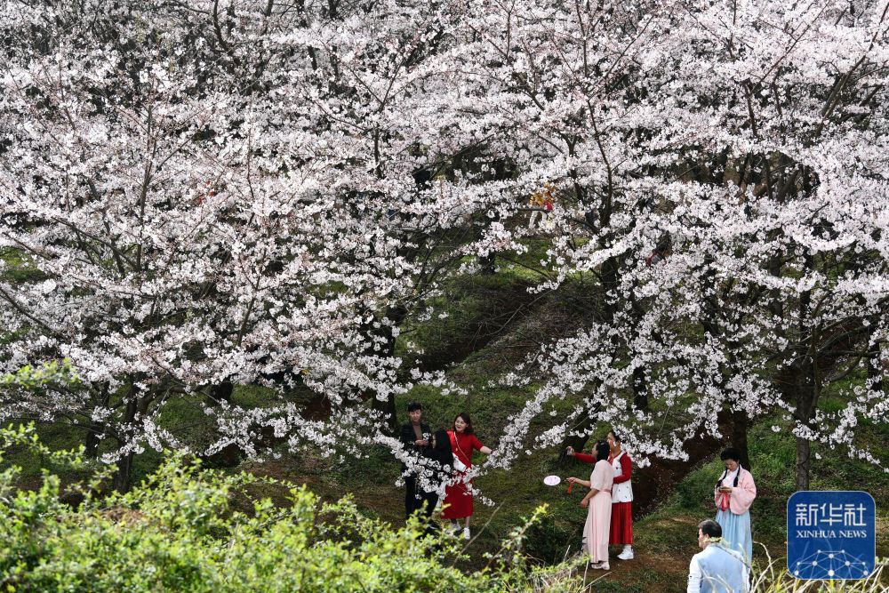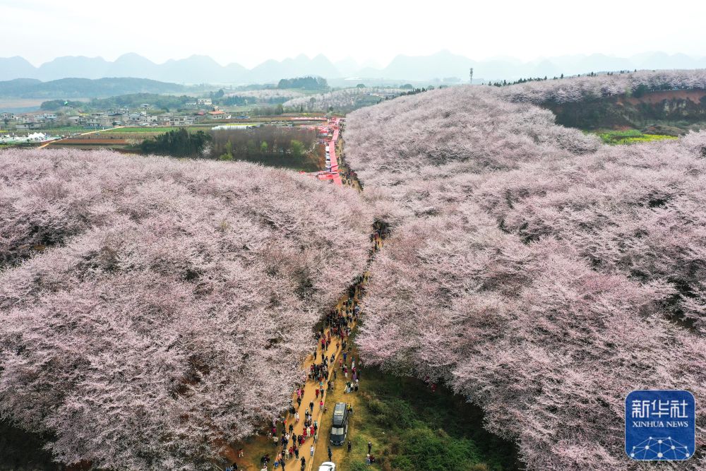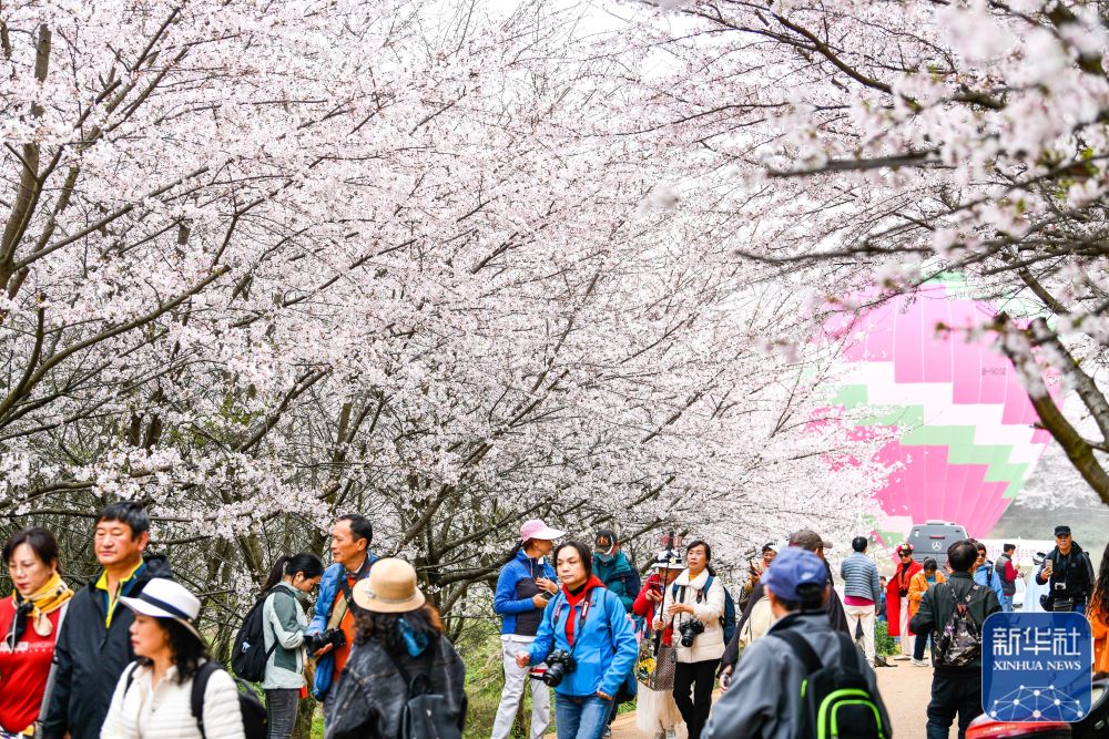 近日,贵州省贵安新区樱花园内的2.4万亩樱花竞相绽放,如雪似霞,吸引游客前来赏花观光。