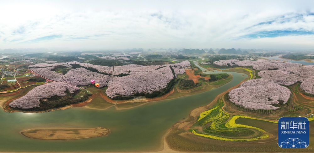 3月21日拍摄的贵州省贵安新区樱花园(无人机全景照片)。新华社记者 杨文斌 摄