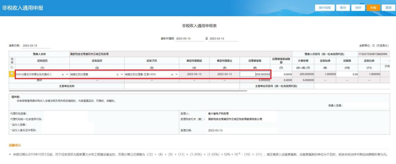 缴费人登录国家税务总局贵州省电子税务局(#),通过电子税务局搜索框搜索“非税收入申报”进入或通过点击【我要办税】-【税费申报缴纳】-【其他申报】-【非税收入申报】填写申报表进行申报。