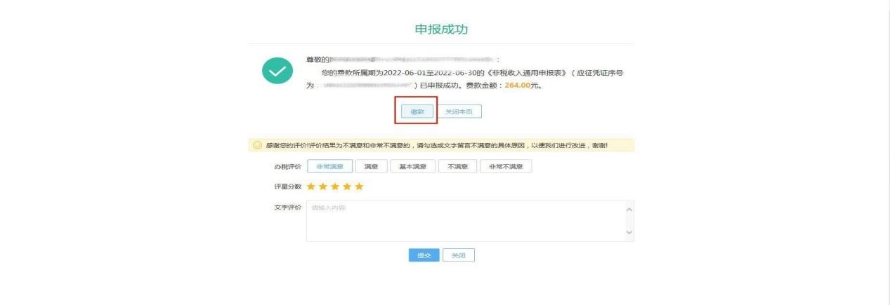 第五步:申报成功后会跳转至【申报结果查询】页面,点击【缴款】。