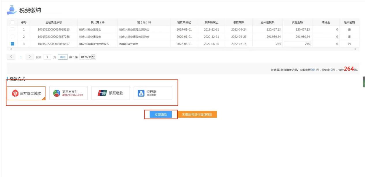 选择进入办税服务厅申报的缴费人: