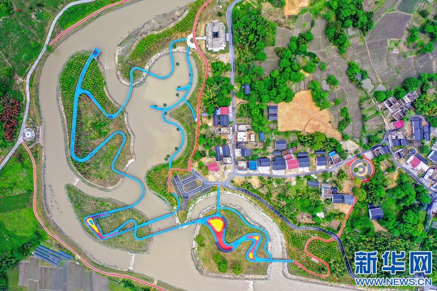 近日,航拍江西省抚州市乐安县招携镇港田村,山环水绕,岸绿景美。新华网发黄煜摄